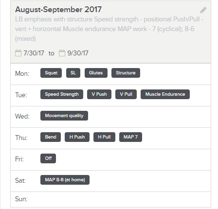 Here is an outline of the themes we designed for Tim over the course of the past 18-20 months! This shows the importance of the long-game in fitness.
